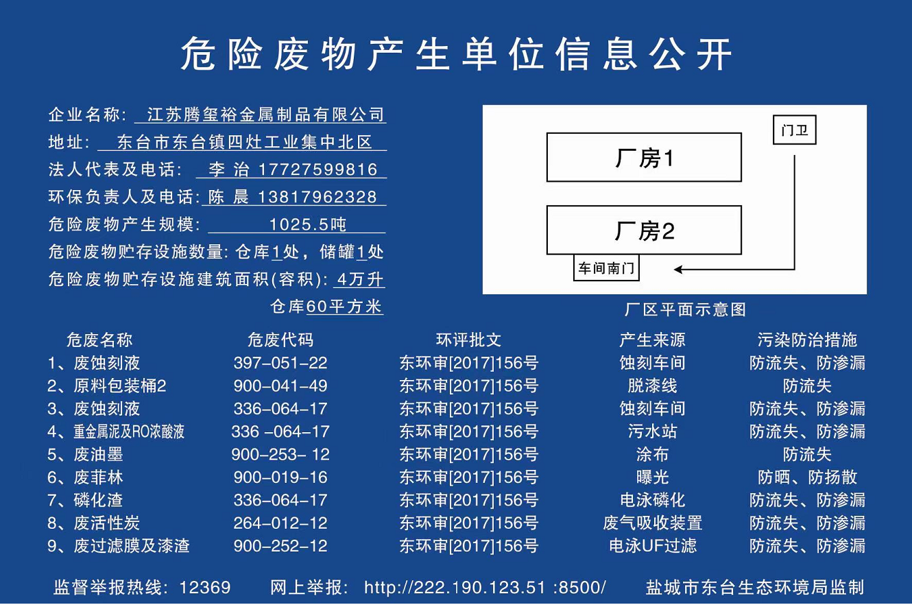 江苏腾玺裕金属制品有限公司成立于2017年8月,是一家从事精密金属蚀刻、卷对卷连续蚀刻、电镀、PVD、电泳、冲压、镭雕、脱漆清洗等一站式供应体系的高新技术企业;